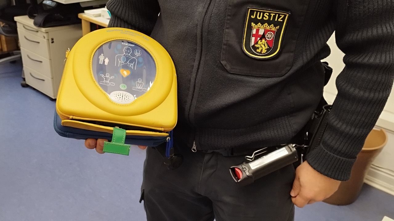 So kam es heute beim Amtsgericht Montabaur wieder zu einer unangekündigten Übung, diese mit der Ausgangslage einer kollabierten, bewusstlosen Person auf einer Geschäftsstelle. Auch die schnelle Verfügbarkeit eines im Gericht vorgehaltenen automatisierten externen Defibrillators (AED) beim Patienten wurde überprüft. Ist eine Herz-Lungen-Wiederbelebung erforderlich, kann mit einem AED durch Abgabe von Elektroschocks eine Stabilisierung des Herzrhythmus erreicht werden. Die Nutzung eines solchen Gerätes ist selbst Laien möglich. Die Ersthelfer des Gerichts sind zudem besonders auf den AED eingewiesen.